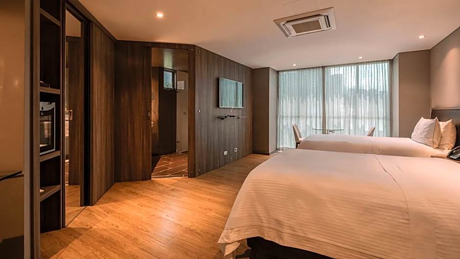 This air-conditioned suite is fitted with a 48” flat-screen TV, individual lamps, an iPod dock and electronic black-outs. It is also styled with art paintings.